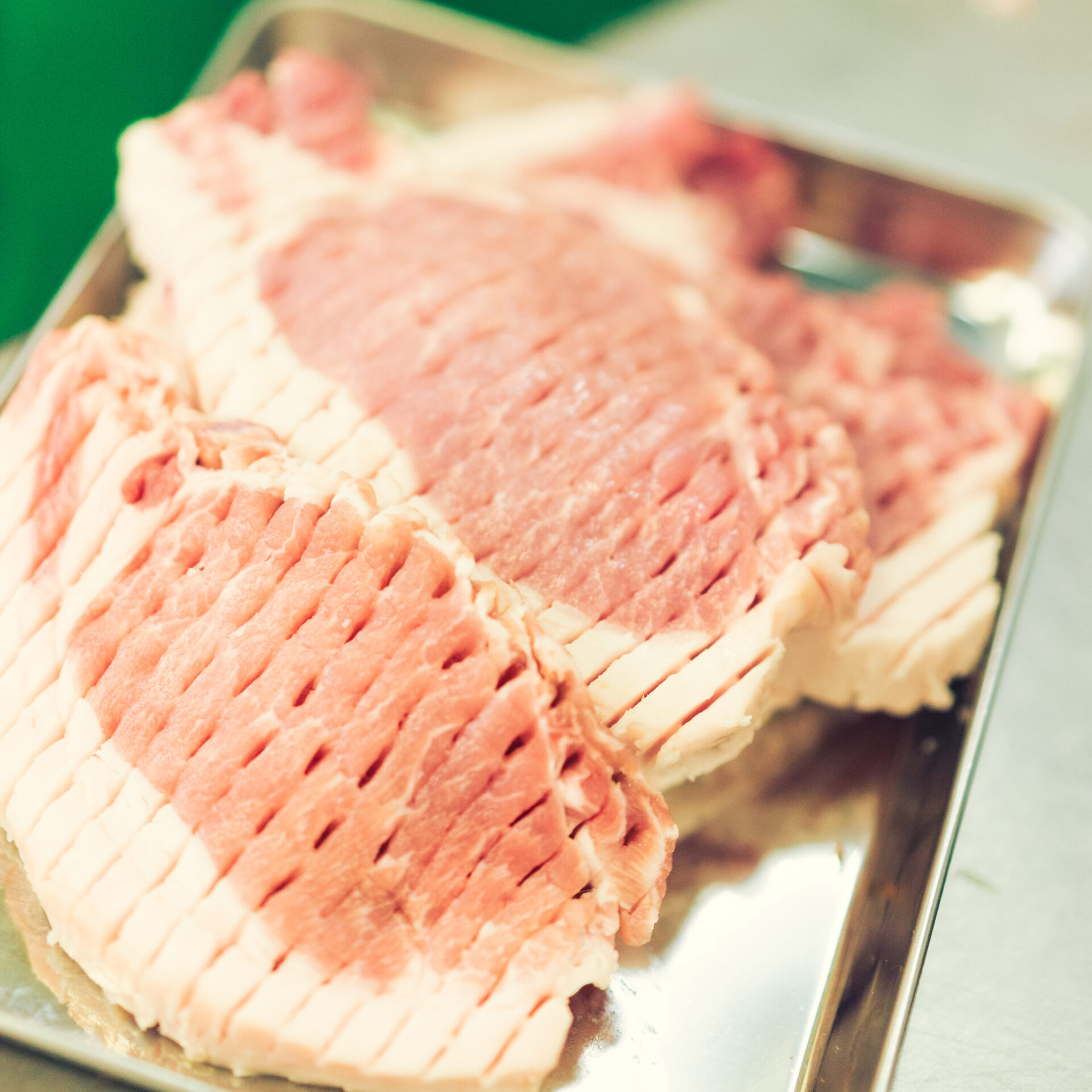 浜松名産の三ヶ日みかんを食べて育った『三ヶ日ポーク』。自然豊かな環境で大切に育てられ、飼料には浜松名産の三ヶ日みかんを加工したものを使って育てられているのが特徴です。そのため「赤身にコク、脂身はさっぱりめ」というバランスで人気がありますこちらをステーキ用に厚く切りました!スライスとはまた違った味わいに!適度な弾力と甘みのある脂が食欲を更に注ぎます。”ステーキ”として焼いても良し、”トンカツ”として揚げても贅沢です!当店では、丸々『トンカツ』としてご注文頂いてから揚げております!店頭にお来店の際は是非お声がけください!